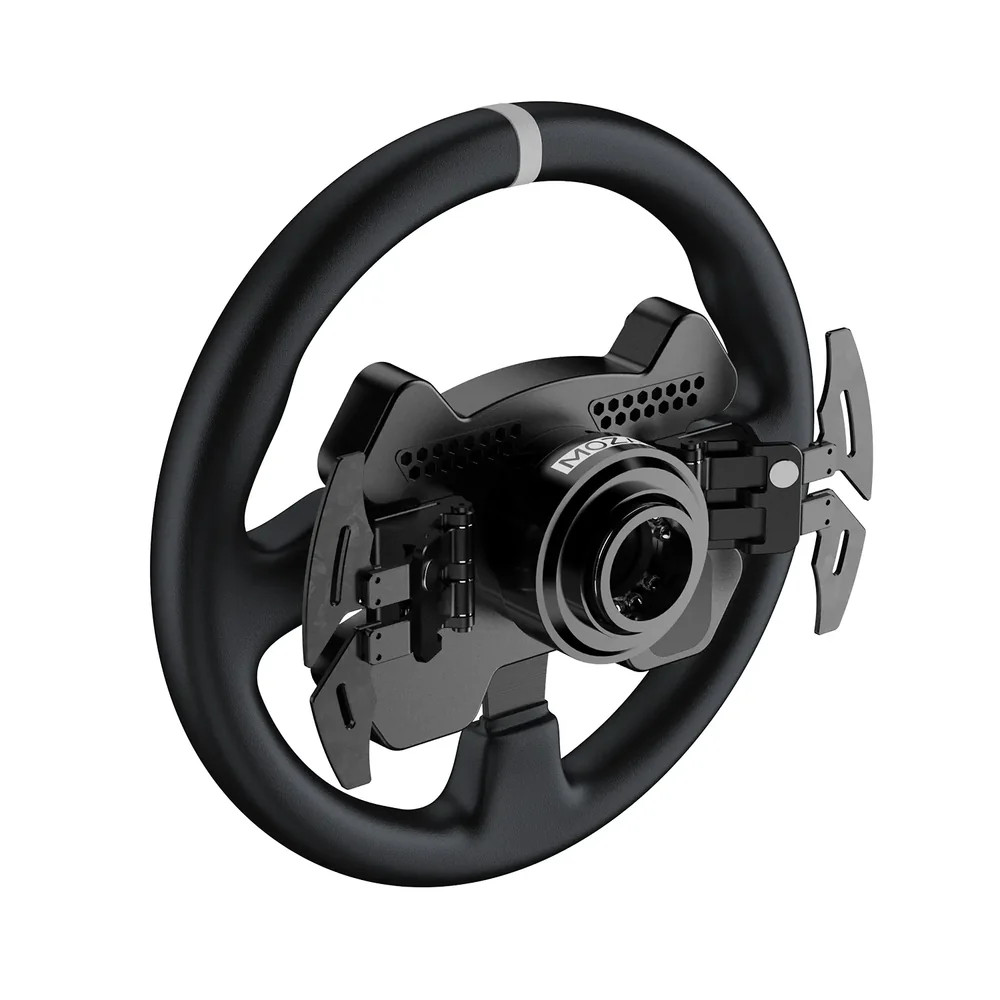 A MOZA CS V2P Steering Wheel vezetési élménye rendkívül valósághű, szinte megegyezik egy igazi autó kormányzásának érzetével. Hat programozható gombbal és két joystickkel érkezik, amelyek számos funkciót helyettesítenek, így a bonyolultabb műveletek is könnyedén elvégezhetők verseny közben. A beállítások kezelése ugyanolyan intuitív, mint egy valódi járműben.