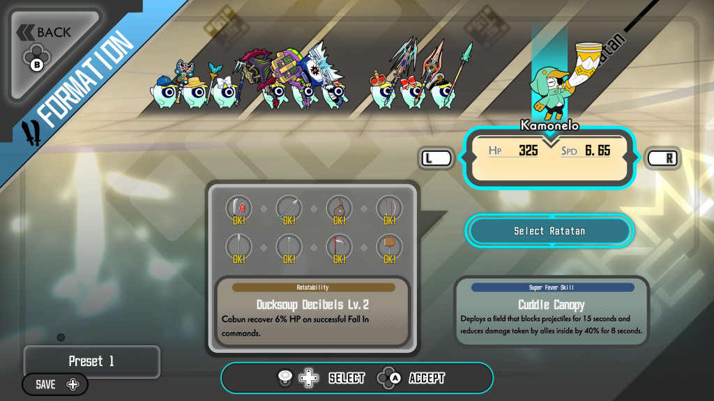 Érezd az ütemet és használd a ritmus parancsokat a zenével szinkronban, hogy Cobunod a megfelelő irányba mozduljon. A Ratatan szabadon mozgatható, úgyhogy dönts legjobb belátásod szerint: hova érdemes parancsot adni, hogyan védekezz, vagy épp mikor érdemes visszavonulót fújni.  A ritmusérzék és a stratégiai tervezés létfontosságú lesz a hosszú kalandok túléléséhez, miközben igyekszel, hogy a lehető legkevesebb Cobunt veszítsd!
