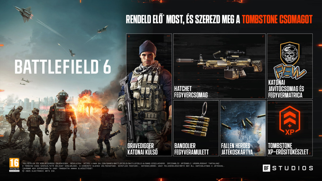 Az egyedülálló háborús élmény. Harcolj intenzív gyalogsági csatákban. Száguldj az égen át a légi harcokban. Rombold le a környezetedet, hogy stratégiai előnyhöz juss. A tankok, harci repülőgépek és hatalmas fegyverarzenálok háborújában csapatod a leghalálosabb fegyver. Ez a Battlefield 6.