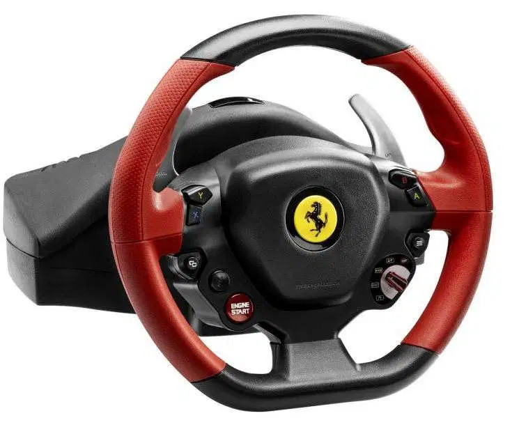 Főbb jellemzők: A Ferrari 458 Spider ihlette, részletgazdag kialakítás; 9 programozható gomb + külön „Engine Start” indítógomb; valósághű ellenállású pedálszett; állítható kormányérzékenység; stabil, központi rögzítőrendszer különböző felületekhez.
